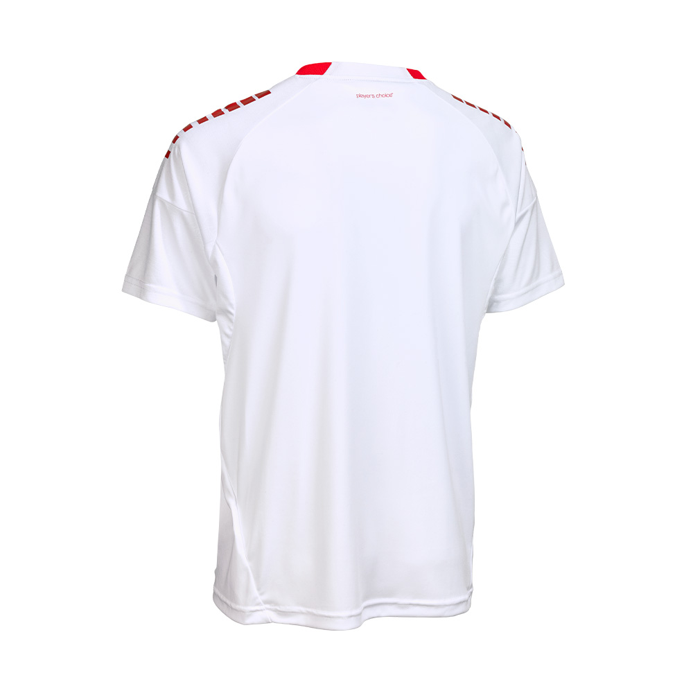• Camiseta de juego y entrenamiento color blanco con vivos rojos. Short rojo con vivos Blancos
